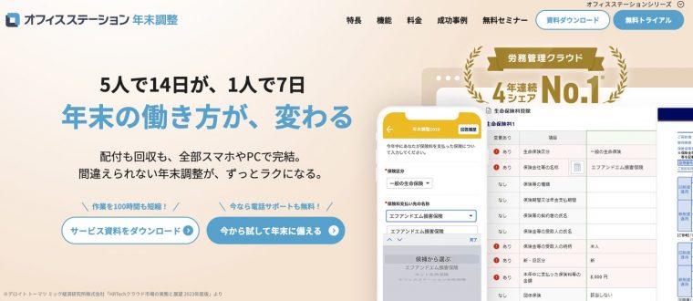 『給与奉行クラウド』は、給与計算から年末調整前の業務をすべてデジタル化。業務時間を大幅に削減してくれる年末調整システムです。