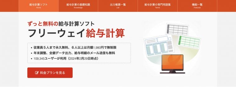 株式会社フリーウェイジャパンが提供している『フリーウェイ給与計算』は、従業員5人までなら永久無料で利用できる給与計算ソフトです。