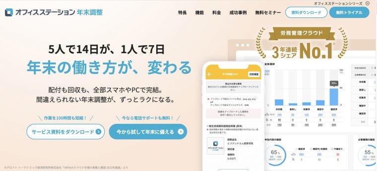 『オフィスステーション 年末調整』は、株式会社エフアンドエムが提供しているクラウド型の年末調整ソフトです。
